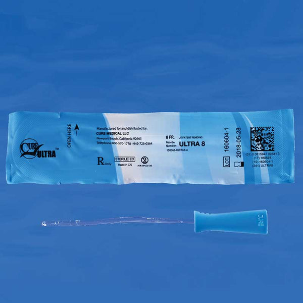 Pre-Lubricated 8 Fr Catheter, Sterile, Female, 6", Straight Tip.
