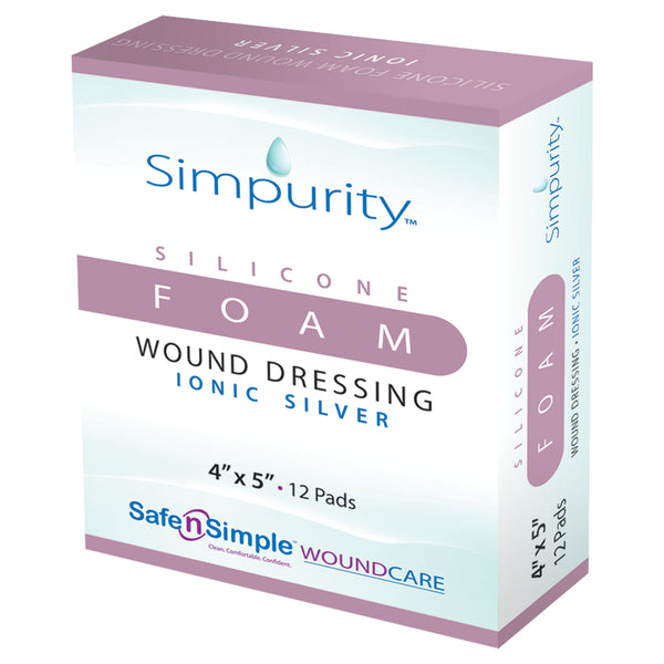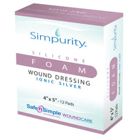 Simpurity Foam Wound Dressing Silver Silicone, 4" x 5".