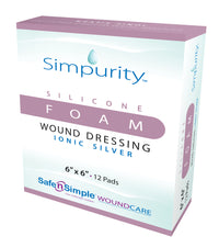 Simpurity Foam Wound Dressing Silver Silicone, 6" x 6".