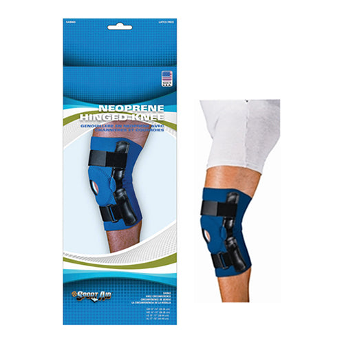 Sportaid Hinged Knee Brace with Open Patella, Neoprene, Blue, X-Large, 17" - 19".
